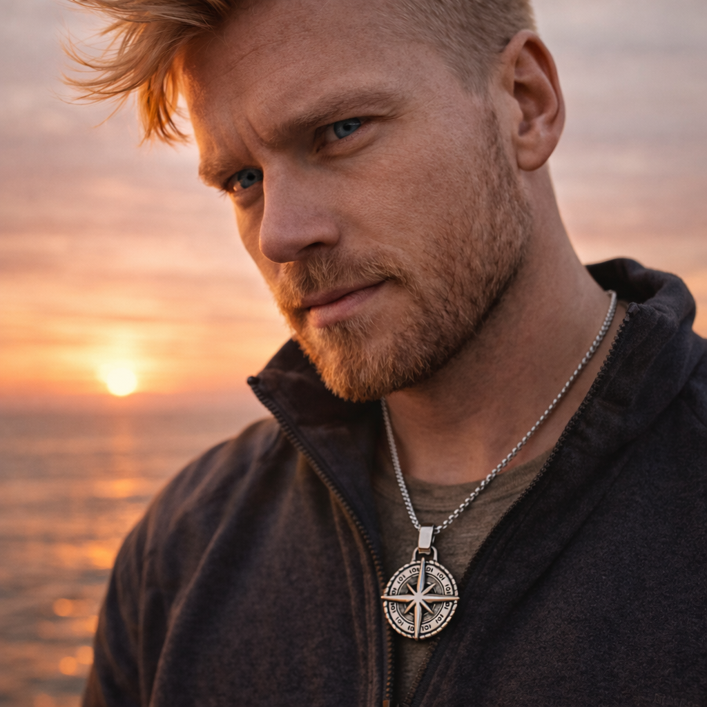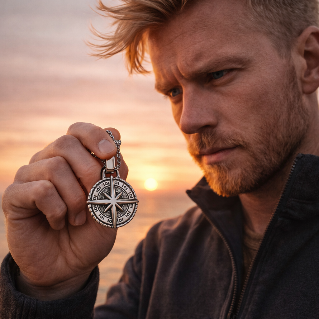 La Boussole du Destin symbolise la direction intérieure, la force de caractère et la capacité de suivre son propre chemin. Un bijou pensé pour l’homme qui sait où il va.
